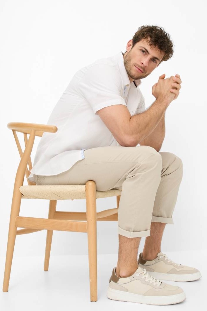 Fabio fitCotton blend stretch95% cotton 5% elastaneNB. Our sizing is inches around waist and 34 inch leg. If the size is followed by an "S" it means a 32 inch leg ie. "34S" is 34 inch waist and 32 inch leg