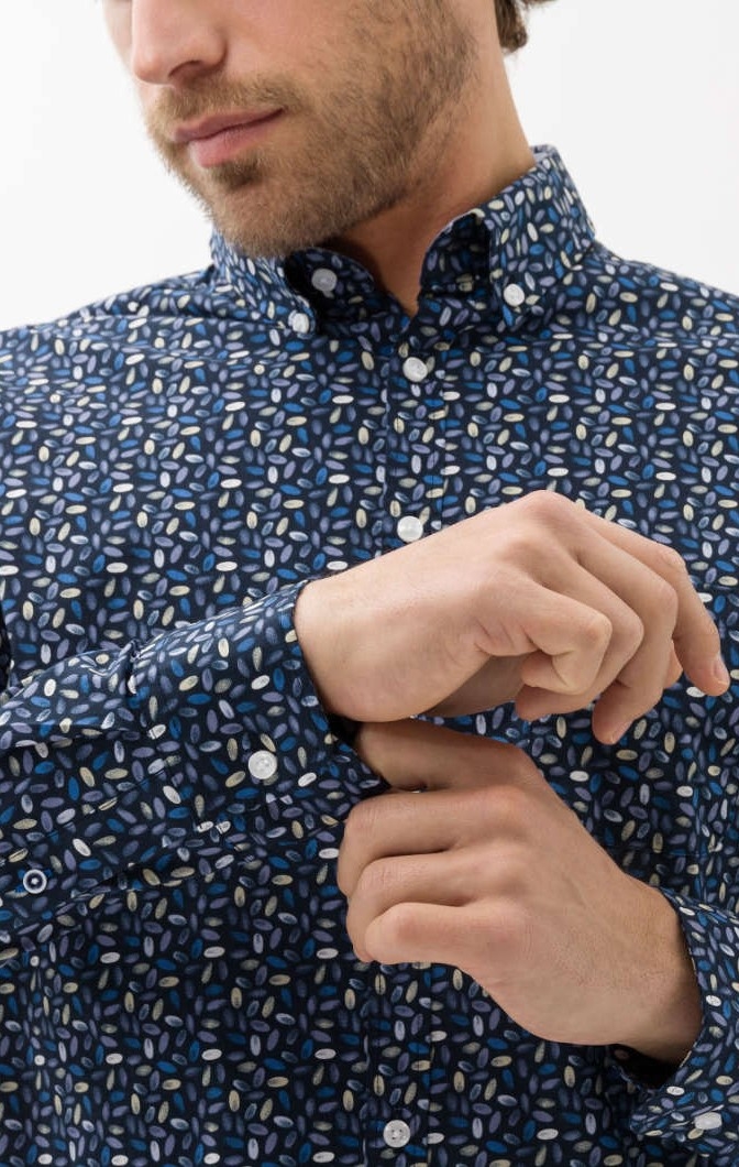 The Brax Daniel men's shirt with a slightly tailored silhouette is a modern fit. The patch chest pocket, logo embroidery and the classic button-down collar give the shirt a timeless character. The elastic Hi-Flex fibers guarantee infinite freedom of movement through high stretch - exclusive to BRAX. Made from an elastic cotton blend, the shirt also offers a comfortable feel and is easy to care for. The combination of comfort, style and durability makes this shirt an excellent choice for fashion-conscious men.