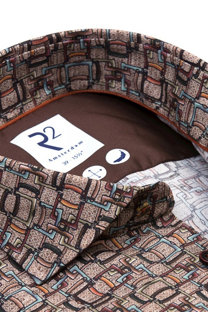 R2 Amsterdam's shirts are characterised by their high quality, fashionable details and trendy twists. The modern-fit ensures the shirt falls slightly fitted along your body. The shirt is finished with a widespread collar, contrasting buttons and is made of cotton blend, making it soft to the touch, comfortable to wear and durable.