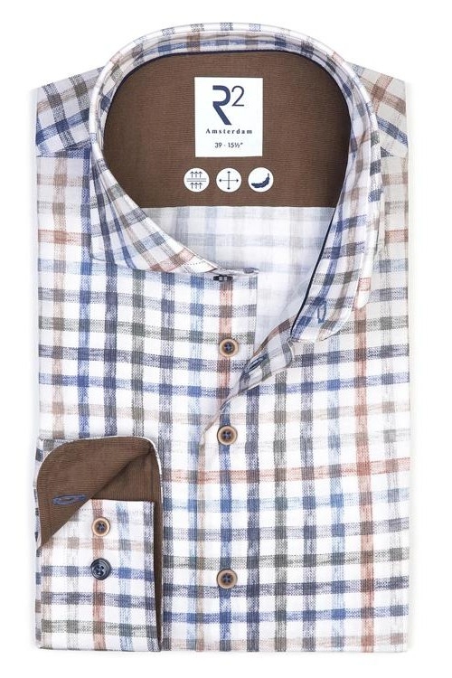 R2 Amsterdam's shirts are characterised by their high quality, fashionable details and trendy twists. The modern-fit ensures the shirt falls slightly fitted along your body. The shirt is finished with a widespread collar, contrasting buttons and is made of cotton, making it soft to the touch, comfortable to wear and durable.