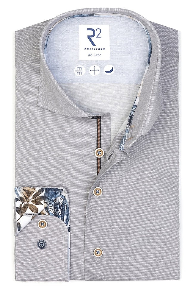 R2 Amsterdam's shirts are characterised by their high quality, fashionable details and trendy twists. The modern-fit ensures the shirt falls slightly fitted along your body. The shirt is finished with a widespread collar, contrasting buttons and fabric inside the collar and cuffs plus a stripe down the front button opening. This lovely shirt is made of cotton and a touch of elastane, making it soft to the touch, comfortable to wear and durable.